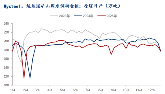 而需求方面随着部分钢厂高炉检修结束,铁水产量在稳步回升。而能否涨价的核心驱动仍在于下游焦钢企业的冬储补库节奏。由于前期市场悲观预期及钢厂高炉检修,下游对于炼焦煤的冬储较为克制谨慎,市场预期焦炭仍有第五轮提降,因此多数焦企炼焦煤库存仍处于历年农历同期低位。不过炼焦煤冬储对于焦企来说是必选项,冬储时间可早可晚,冬储量可高可低,但冬储补库却不得不为。从我们调研的企业的反馈来看,多数焦企受前期悲观预期影响,库存较低,将补库时间推迟至1月10号之后,观望心态浓厚,但本次盘面涨停对于现货市场情绪起到不小的提振作用,焦企或将在近期抢跑补库,焦煤现货价格预计近期实现反弹,焦炭后续提降预计搁置,冬储行情虽迟但到。