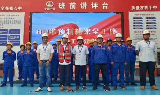 帕德玛铁路连接线项目管理跨度137公里,桥梁总长25公里,多处需跨越河流、村道及既有铁路,工期紧、雨季长,资源组织压力大。吴问兵超前谋划、优化工艺,将单孔节段梁架设时间从10天压缩至5天;6台架桥机同步作业,期间单月架梁达1.5公里日成桥50米创造了国内外同类型单孔节段梁施工的最高效率。吴问兵用担当与创新,擦亮了中国建桥的国际名片,更以奋斗实干,书写着中国铁路人“走出去”的新篇章。